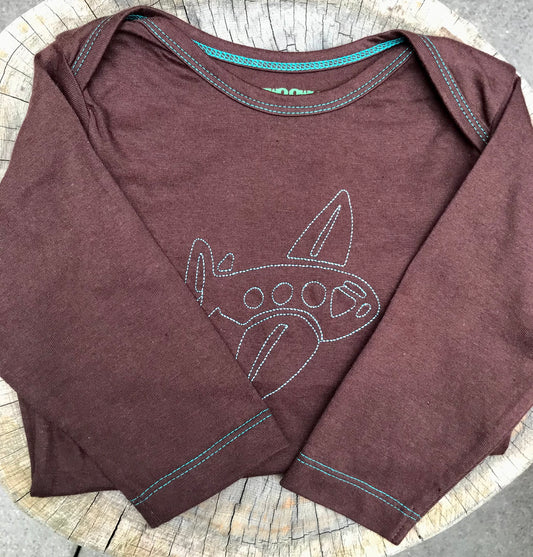 Brown/Blue Airplane Baby Long Sleeve Tee
