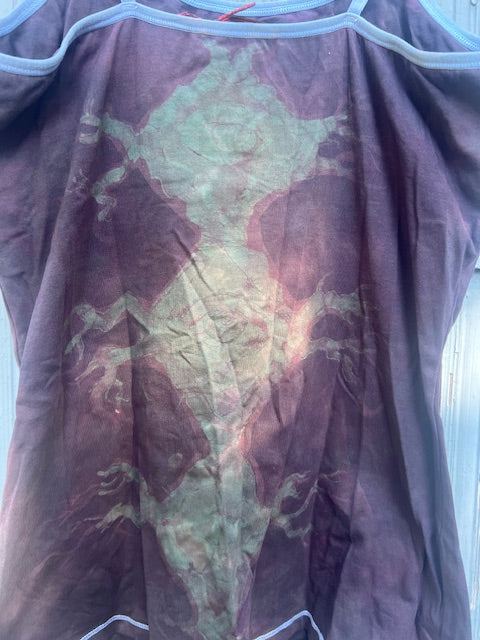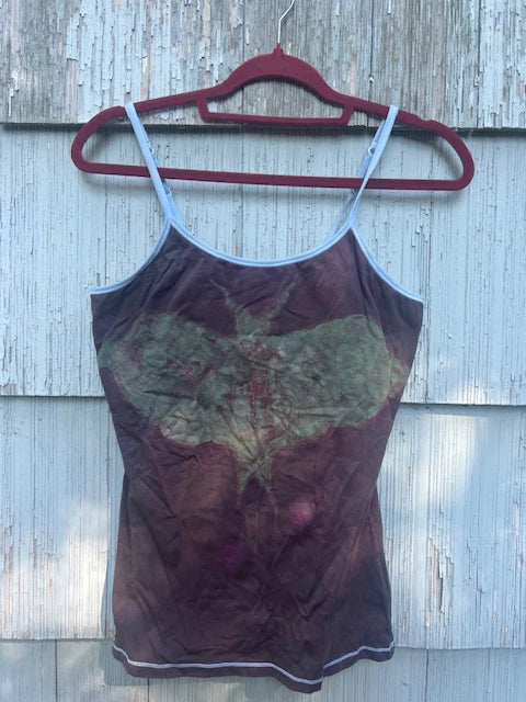 Cami has built in shelf bra. Stretchy, fitted, comfortable. Good for layering, has support and is more comfortable than a bra! Hand drawn, painted, and dyed in Seattle by Pomegranate Batik.