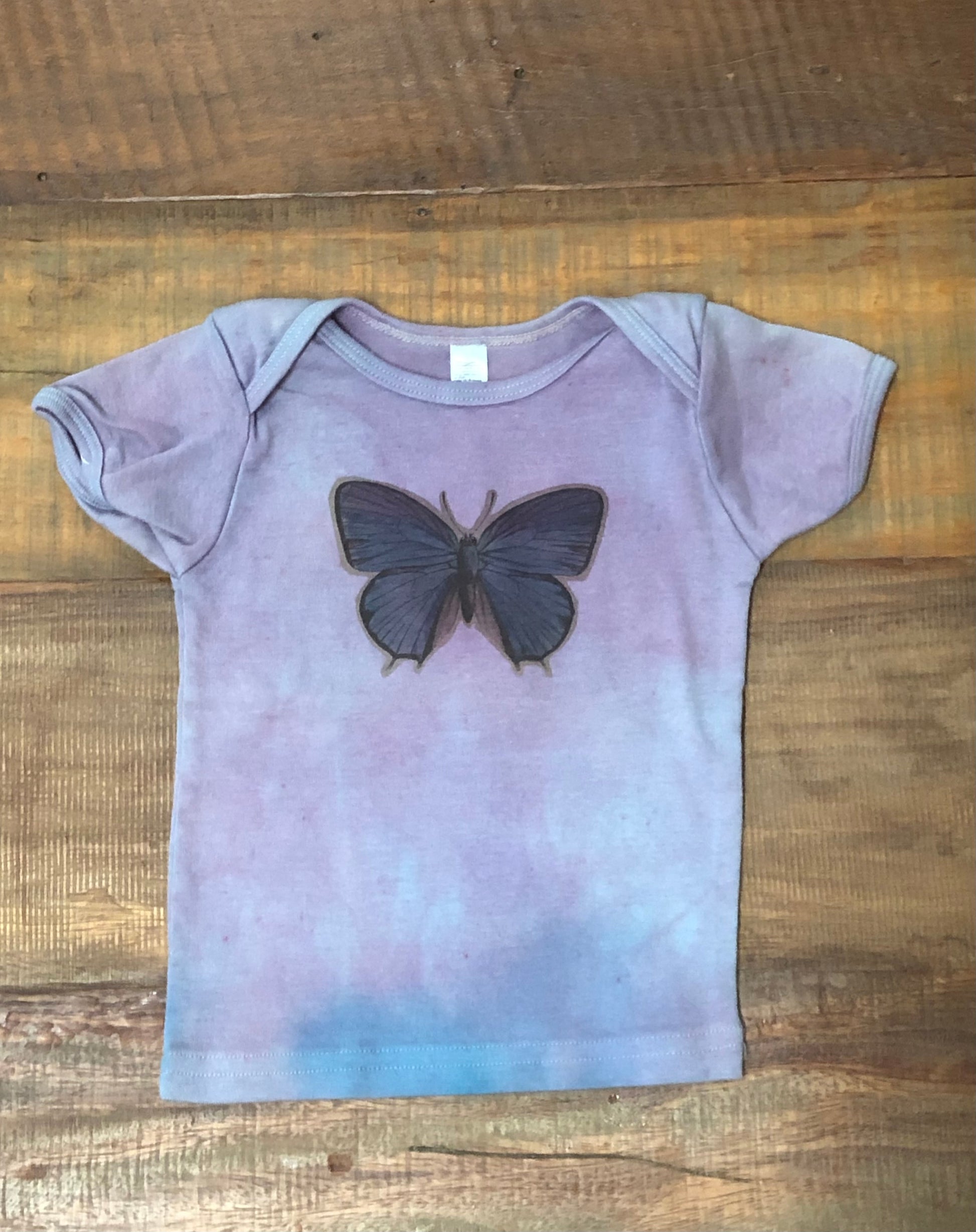TwoOwls Butterfly Printed on a Green, Pink, Purple, or Blue Short-Sleeve Tee