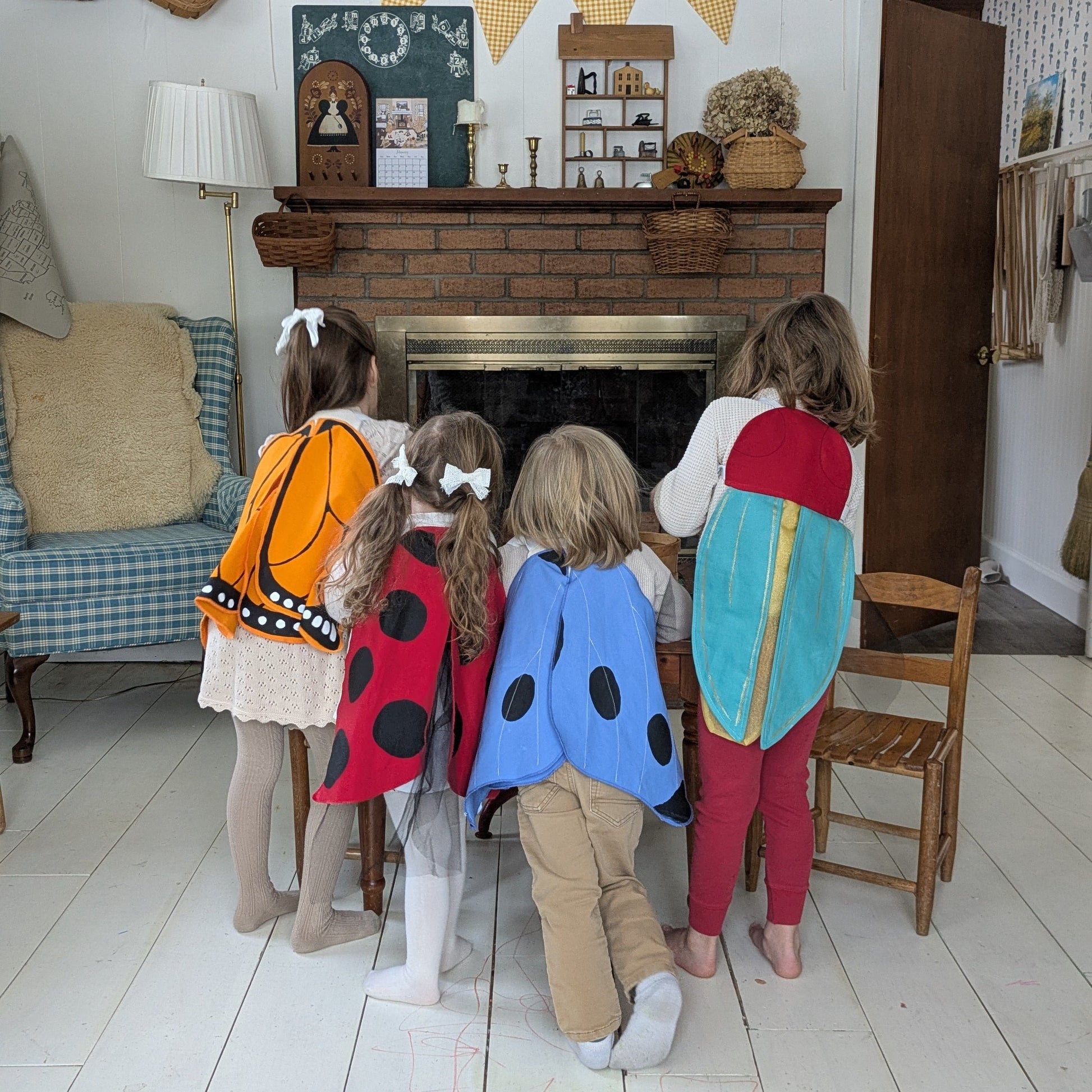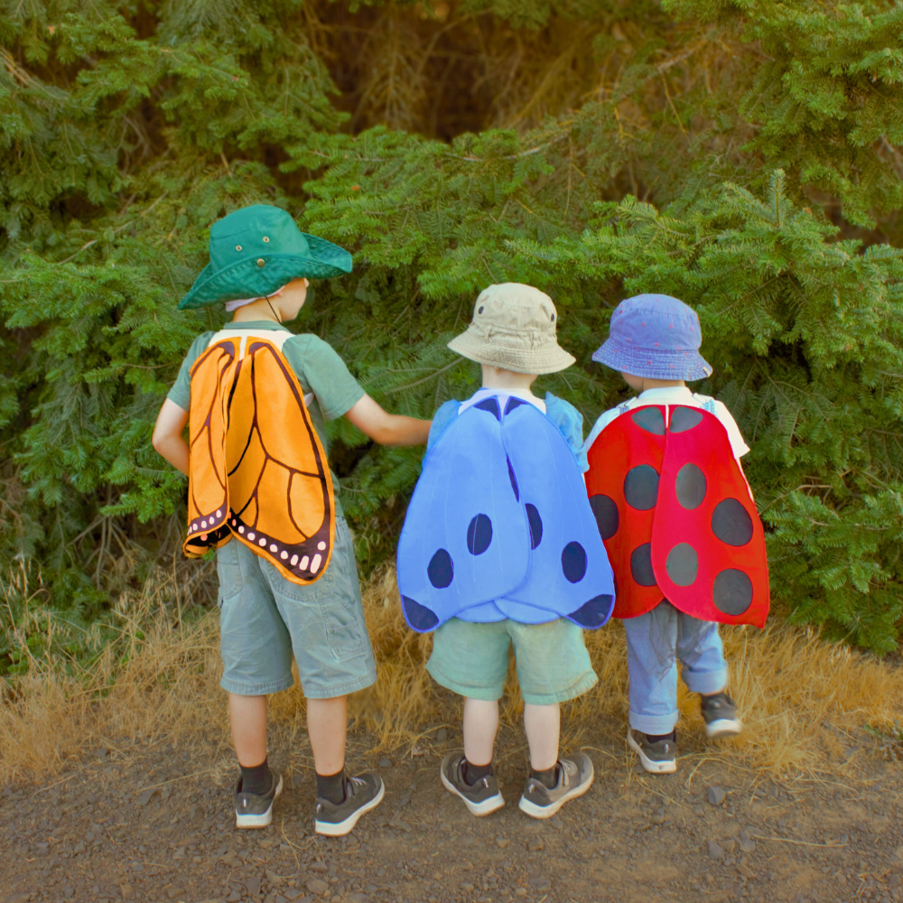 The wings are attached with elastic armbands that are wide and comfortable for little shoulders. Pairs beautifully with the Antennae Hat to add some nature whimsy to your everyday play.